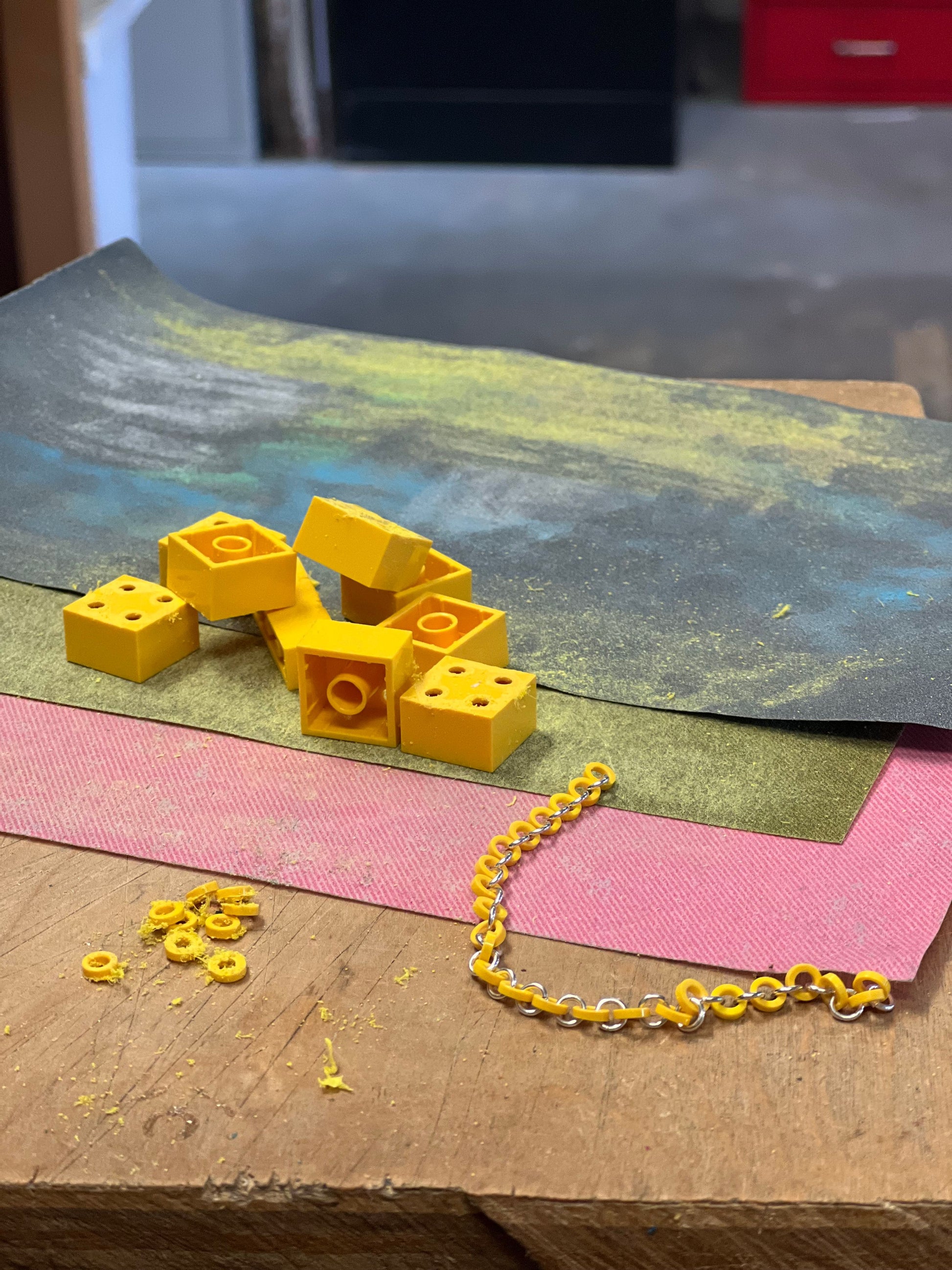 JacQueline drills, cuts and sands each brick to create a strand of rings to freely hang in harmony with you. It's the perfect conversation starter, because don't we all want to talk about how much we love LEGO®.