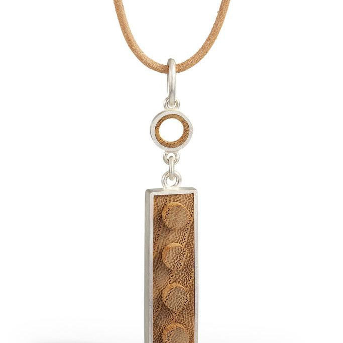Hand-fabricated sterling silver and Mokulock brick on leather cord with sterling silver lobster clasp