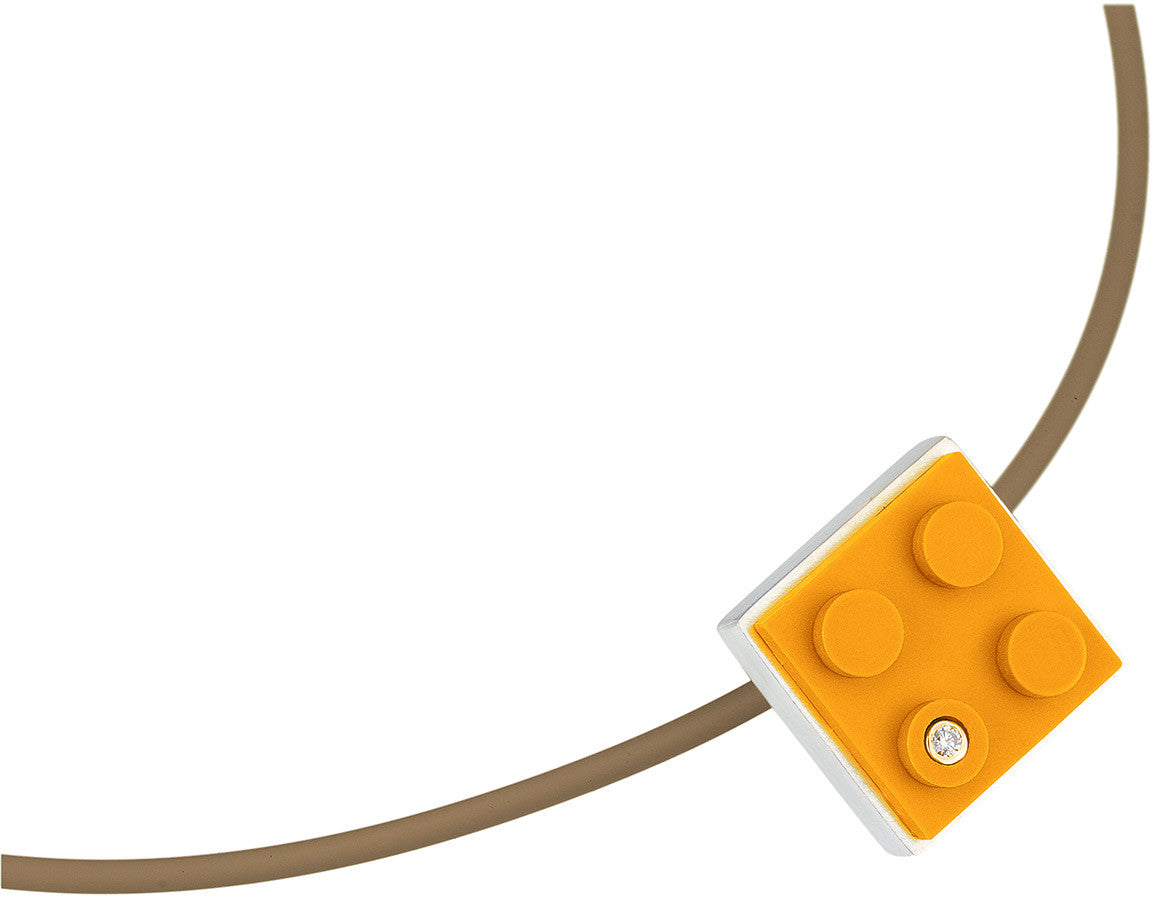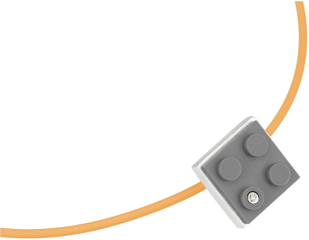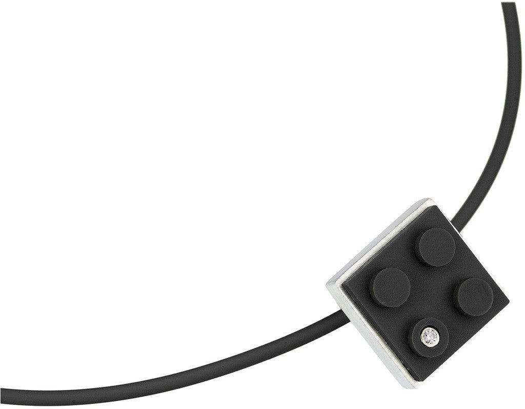 Fabricated sterling silver with brushed finish and .03ct diamond with a sandblasted LEGO® brick