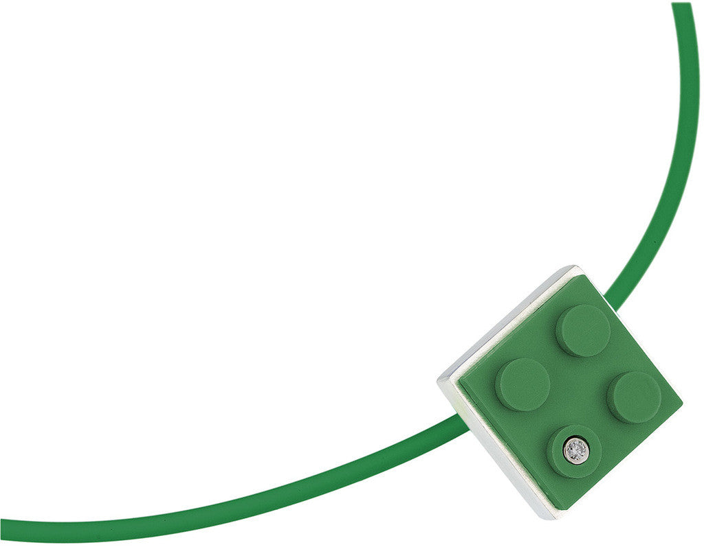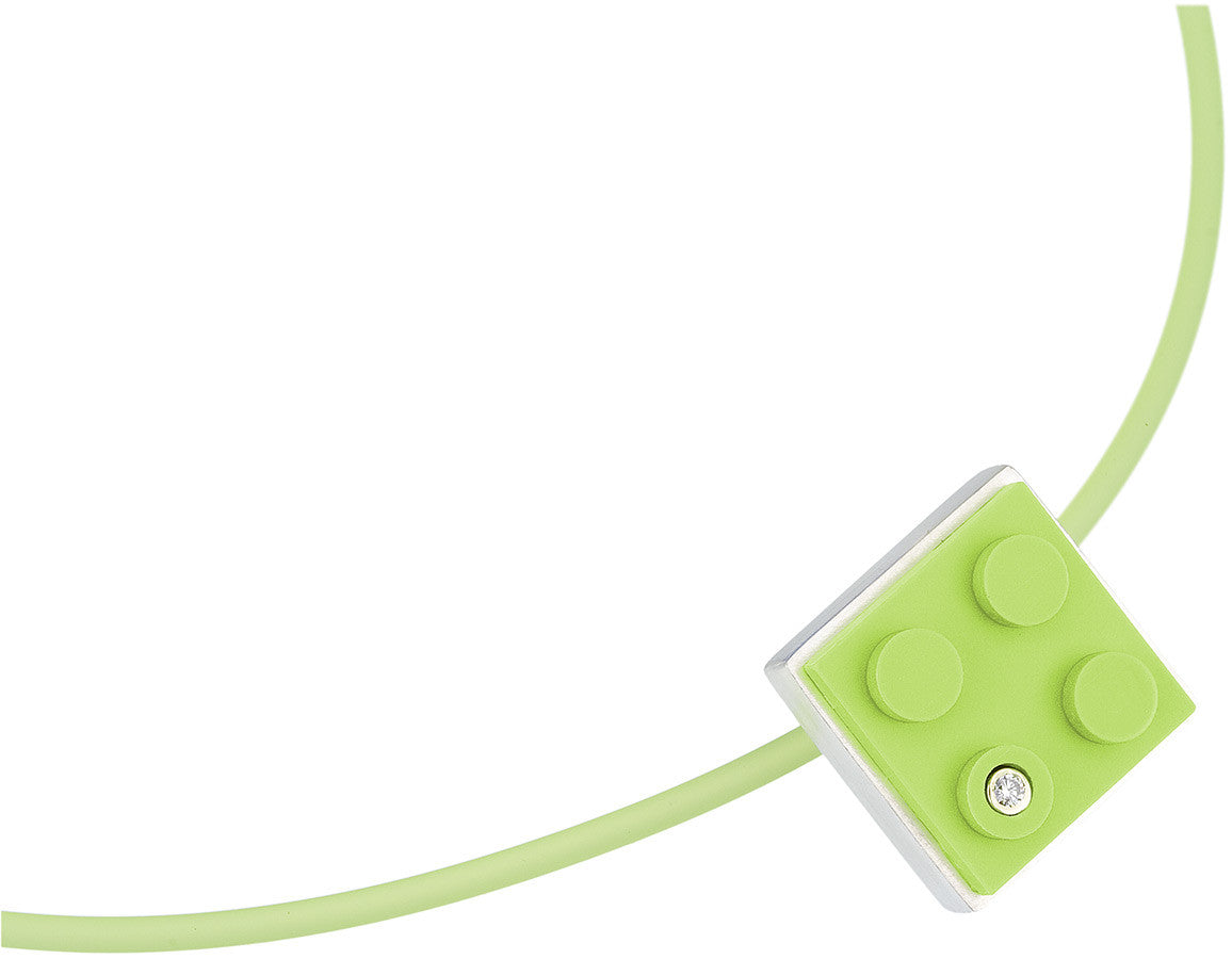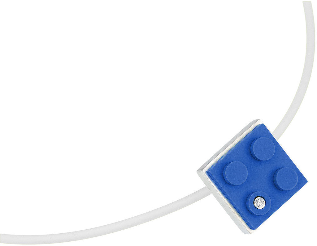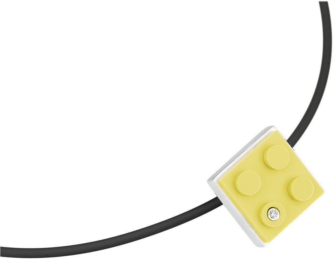Fabricated sterling silver with brushed finish and .03ct diamond with a sandblasted LEGO® brick