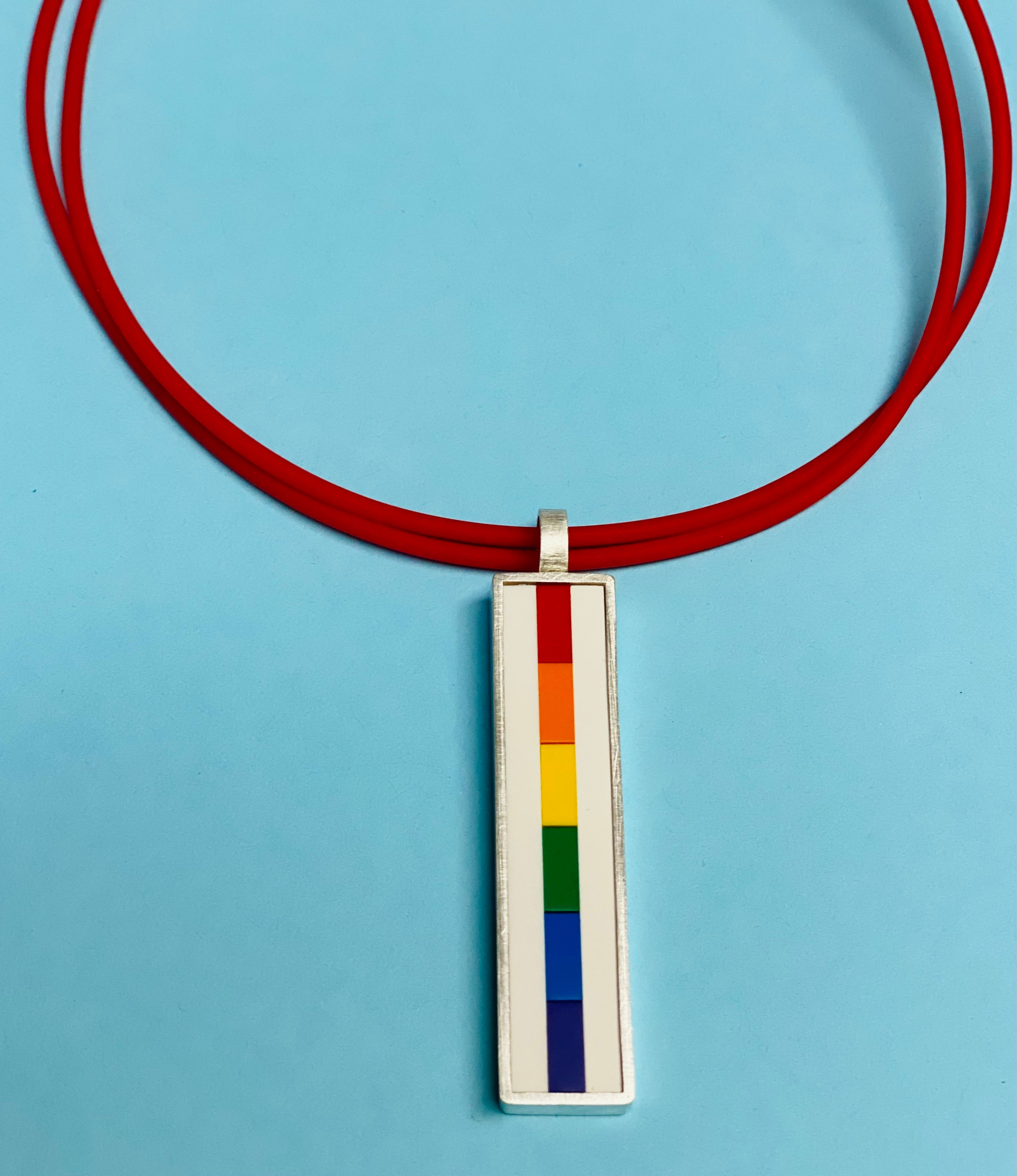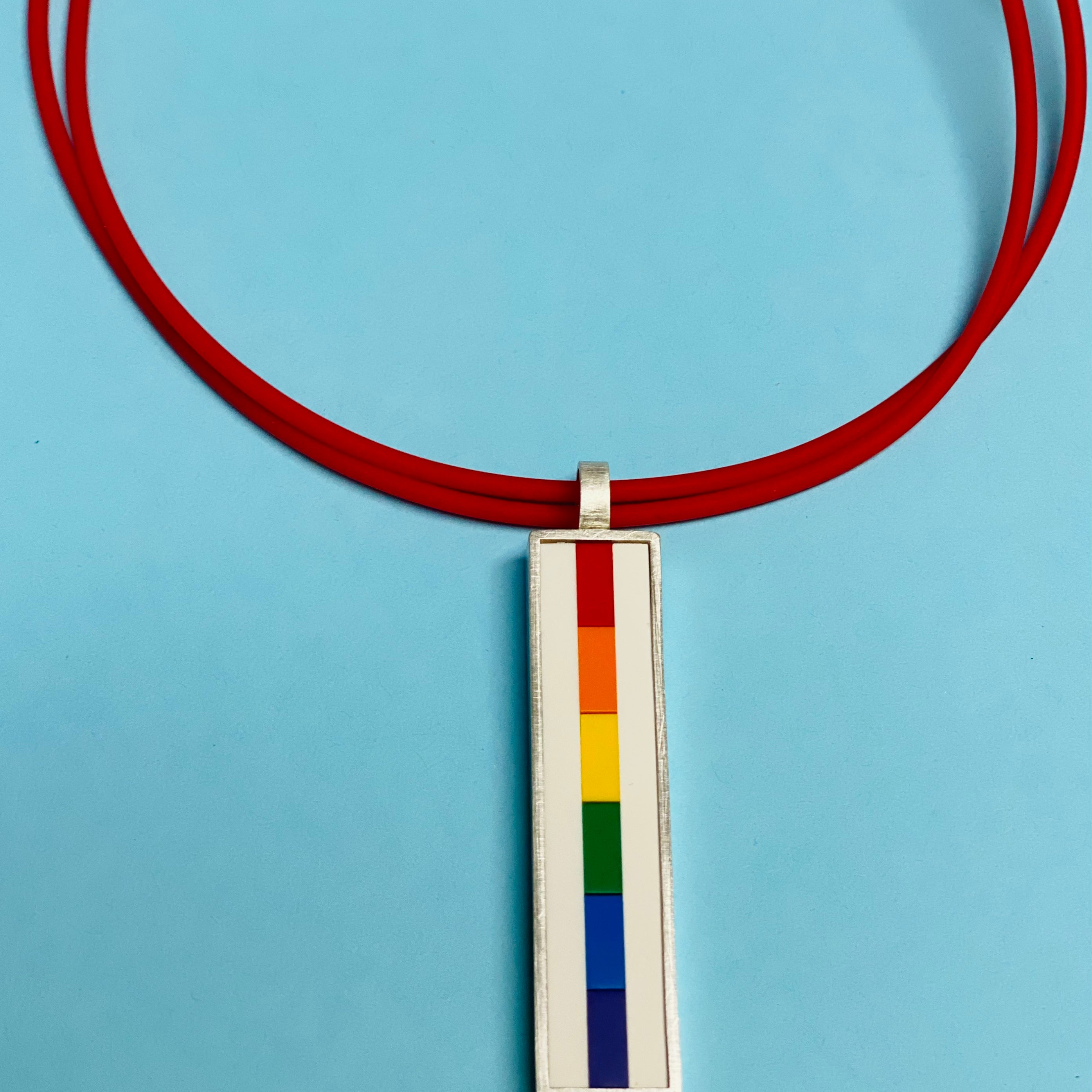 Linear Rainbow Pendant – Handcrafted LEGO® & Sterling Silver Statement Necklace