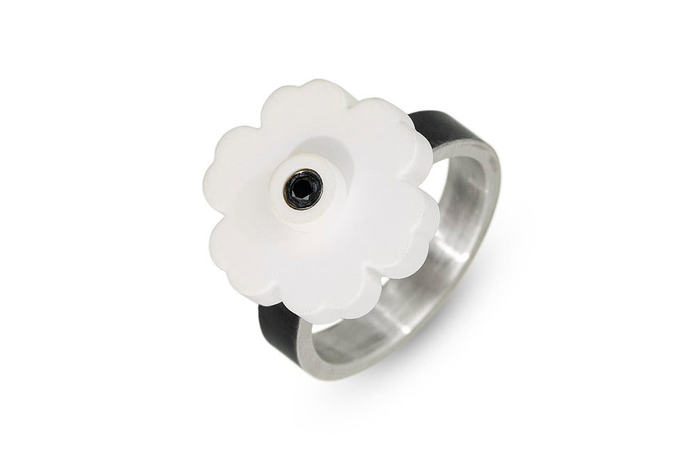 Inspired by Andy Warhol's flowers, these LEGO® flower statement rings with diamonds should make you smile and bring out the artist in you.