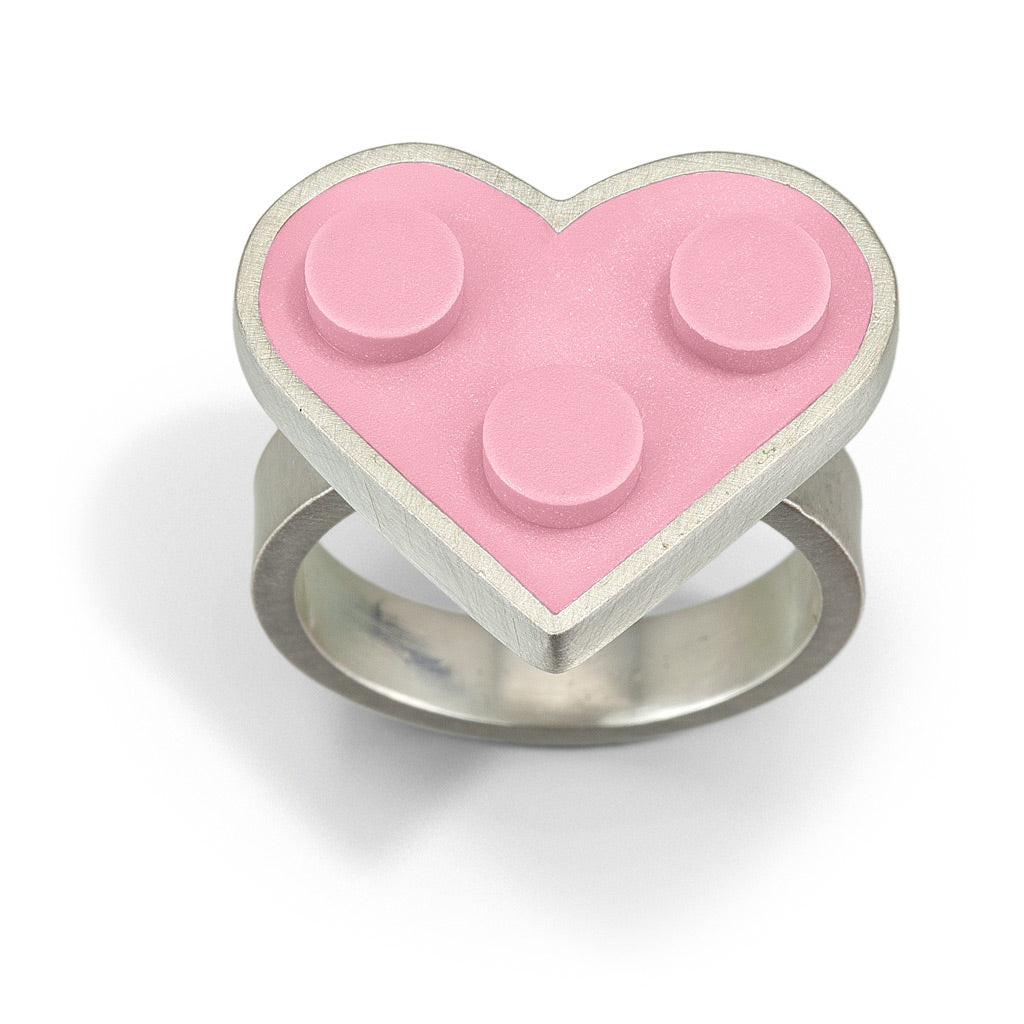 Hand fabricated sterling silver with custom cut LEGO ® brick