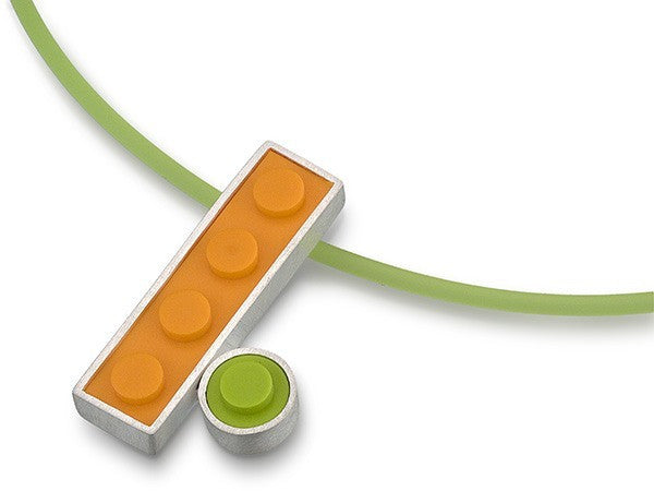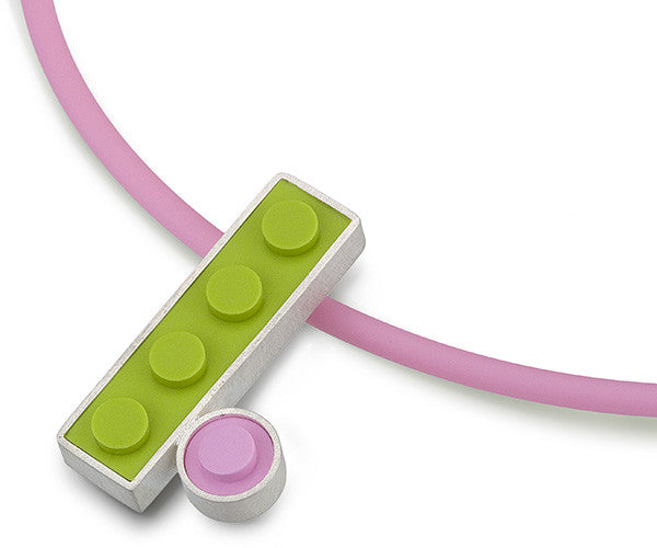 Fabricated sterling silver with brushed finish and sandblasted LEGO® bricks.